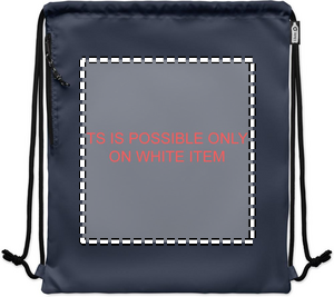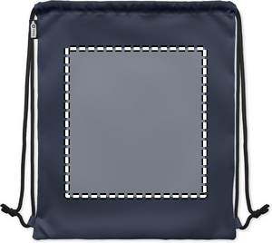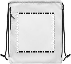 Large drawstring bag in 300D RPET polyester with side zippered outer pocket.
