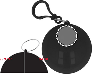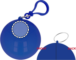 Regnponcho i rund beholder med karabinkrok.