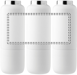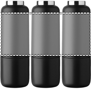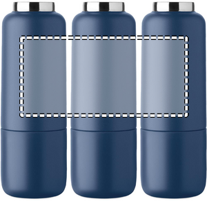 Dubbelväggig isolerad flaska i 90% återvunnet rostfritt stål och 10% rostfritt stål, med integrerat remhandtag och extra lång rem (70 cm) i PP-lock. Läckagefri. Bottenmugg ingår. Volym: 500 ml.