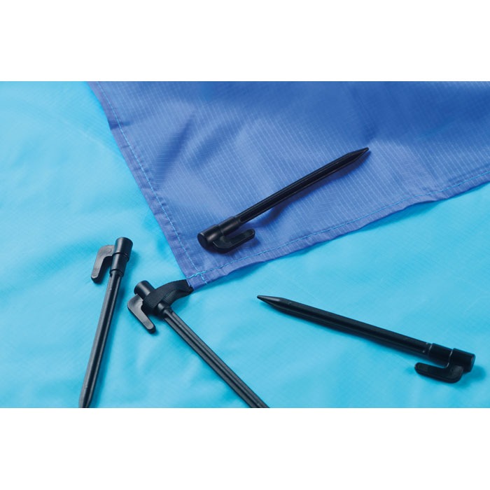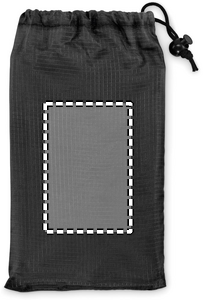 Lätt strandmatta i 210T polyester som mäter 200x210 cm. Inklusive 4 svarta krokar och en matchande påse för enkel transport.