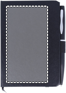A6 inbunden anteckningsbok med hård pärm i PU, 72 sidor linjerat papper, gummiögla och bokmärkesband i satin. Inklusive kulspetspenna i metall med blått bläck. FSC MIX CREDIT | P7.1 | FSC-C213206