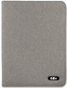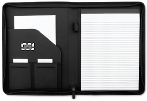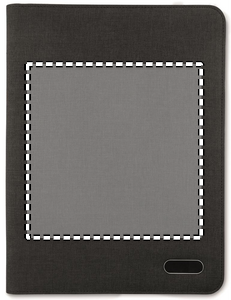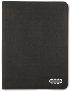 Konferansemappe A4-størrelse i duotone polyester. Flere praktiske rom for visittkort, dokumenter og penn. 20-sidet linjet notatblokk inkludert.