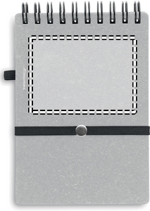 Anteckningsblock med omslag av återvunnet papper och PU (70% återvunnet papper och 30% PU). Ringbunden. 140 linjerade sidor av återvunnet papper (70 ark). Matchande penna i återvunnen kartong och ABS-delar. Blått bläck. Elastiskt stängningsband och pennhållare. FSC®-certified | FSC MIX CREDIT, P7.1, FSC-C213206