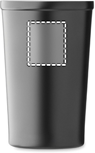 Dubbelväggig vakuumisolerad mugg i återvunnet rostfritt stål (90 % återvunnet rostfritt stål och 10 % rostfritt stål) med keramiskt insida. Volym: 450 ml.