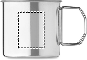 Enkelväggig mugg i rostfritt stål med vikbart handtag. Kapacitet: 330 ml.