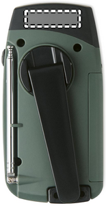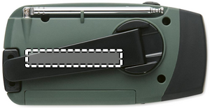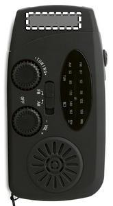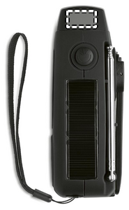 Bärbar AM/FM-radio i ABS med LED-lampa (2 inställningar) och en 1200mAh Powerbank för nödladdning. Självförsörjande med solcellsdrift och dynamo handvev.
