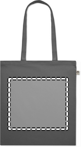Kasse i ekologisk bomull med långa handtag. 180 gr/m².