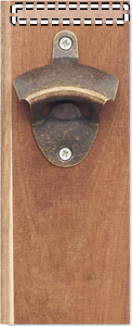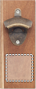 Väggmonterad flasköppnare i akaciaträ och järn. Den har en kraftfull magnet monterad.