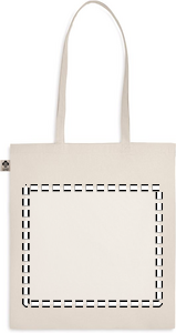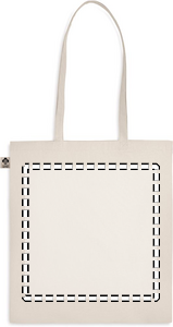 Shoppingkasse i Ekologisk bomull med långa handtag. 105 gr/m². Denna produkt är certifierad enligt OEKO-TEX® STANDARD 100.