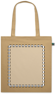 Shoppingväska i färgad Fairtrade-bomull med långa handtag. 140 gr/m². Denna produkt är certifierad enligt OEKO-TEX® STANDARD 100.