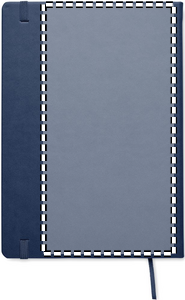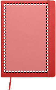 A5 notebook with hard PU cover. Casebound. 200 lined pages (100 sheets) in recycled paper (80 gsm). Matching elastic closure strap and ribbon page-marker. Made in EU.