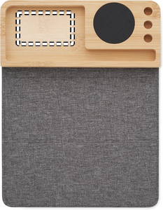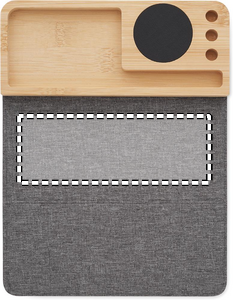 Trådlös laddare och skrivbordsorganisatör i bambu med telefonställ, 3 pennhållare och vikbar RPET-musmatta. Uteggekt: DC 9V/1,67A (15W).
