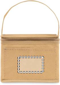 Kjølebag i vevd papir til 6 bokser med 33cl. Lomme foran og håndtak.