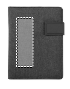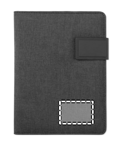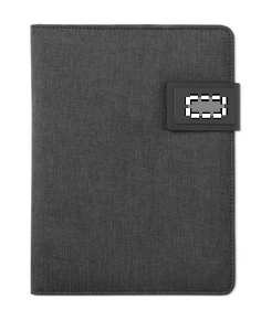 A5 portfølje med magnetisk lukking og inkluderer powerbank med 4000 mAh kapasitet. Innebygd micro USB til type C-kontakt. Portføljen har også notatblokk med 20 sider og flere lommer på innsiden.
