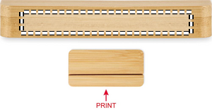 Skylt i aluminium med sublimering och bas av naturlig bambu. Idealisk för anpassad varumärkesprofilering eller display.