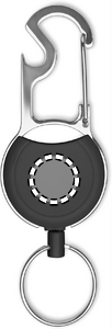 Korthållare med jojofunktion i ABS med clips, nyckelring och flasköppnare.