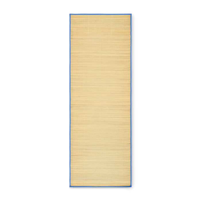 Hoprullbar liggunderlag för stranden bestående av naturstrå med bärrem av polyester.