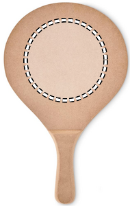 Beach tennis set consisting of 2 MDF paddles and 1 soft ball. Presented in a mesh cotton drawcord.