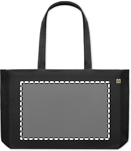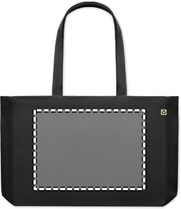 280 gr/m² recycled canvas shopping bag or beach bag available in multiple colours. This tote bag has long handles so it can be carried by hand or over the shoulder to keep your hands free. The gusset base makes it very useful to bring a lot of items with you to the beach or when grocery shopping. The bag is made from 50% cotton and 50% recycled cotton.