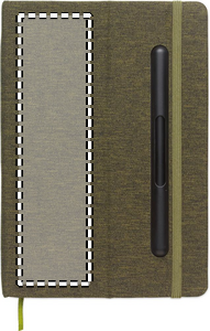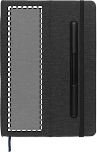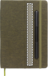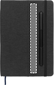 A5 anteckningsbok med hårt RPET-omslag med telefonhållarfunktion. Integrerad 2-i-1 bläckfri penna i ABS. Inbunden, 192 linjerade sidor av återvunnet papper (96 ark). Matchande band och bokmärke. FSC®-certified | FSC MIX CREDIT, P7.1, FSC-C213206