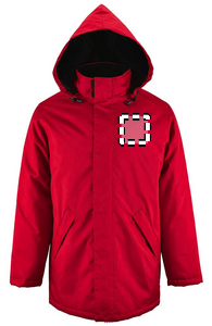 SOL'S ROBYN, unisex jakke med polstret fôr, 100 % polyester - pvc- belegg, fôr og polstring: 100 % polyester oxford 300d, glidelåsåpning med dobbel glidelås og stolpelås med selvklemmende stropper og skjulte trykknapper, hette på innsiden av kragen, fleecefôret innerkrage, 2 utvendige glidelåslommer med klaff, 1 innvendig lomme, mansjettknapper. For størrelsesmatching, se størrelsestabellen i produktdokumentasjonen.