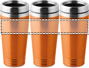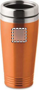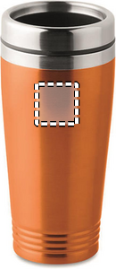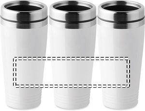 Rustfritt stål termokrus med dobbel vegg og svart PP plastlokk. Rommer: 400 ml. Lekkasjefri.