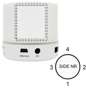 2.1 Bluetooth-høyttaler med LED-lys indikator, med 3 farger. Et oppladbart litiumbatteri med 500 mAh kapasitet. Inkluderer SD-kort port og AUX/USB-kabel. Hands free samtalefunksjon.