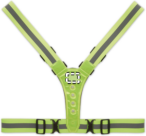 Adjustable 360° reflective body belt with 4 LED on front and 4 LED's on the back and silver stripes. Included 2 CR2032 battery. For promotional use only.