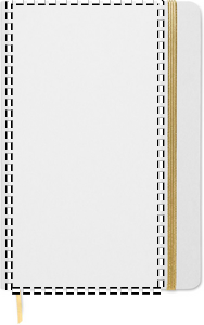 A5 anteckningsbok med omslag av hård återvunnen kartong. Svart omslag. Inbunden med 160 linjerade sidor av återvunnet papper (80 ark). Elastiskt stängnings- och läsband matchar den underliggande färgen. Efter lasergraveringen kommer logon att träda fram i samma färg som bandet.
