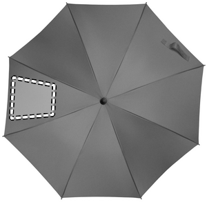 23 tums vindtätt paraply med automatisk öppning i 190T polyester med ram i glasfiber och svartpläterat skaft och plastspetsar. Handtag i ABS med gummifinish. Manuell stängning.