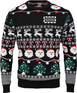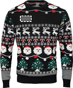 Jultröja med 10 LED-lampor i akryl. Storlek: L/XL. Visa upp dig på jobbet eller på familjens julmiddag med stil med den här festliga tröjan. Utbytbart batterifack. Inklusive 2 CR2032 batterier.