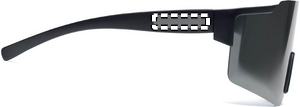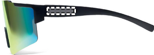 Sportsolglasögon med spegelglas och svart båge. UV400-skydd.