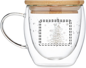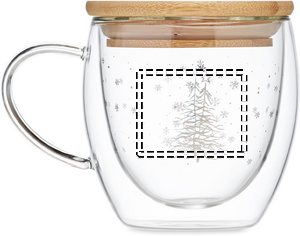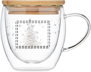 Double wall borosilicate mug with tree design and bamboo lid. Capacity: 220 ml. Drink your favourite coffee or tea in this festive Christmas themed mug. The natural bamboo lid can be used as a coaster and gives it a stylish touch. Borosilicate glass is perfect for holding hot liquids. Bamboo is a natural product, there may be slight variations in colour and size per item, which can affect the final decoration outcome.