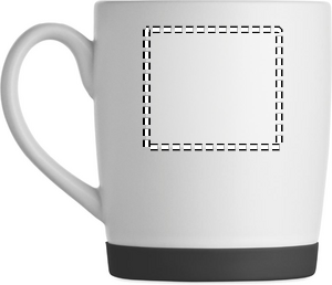 Keramisk mugg med vit matt yta och silikonbotten för stabilitet. Volym 300 ml. Individuell förpackning i vit kartong.
