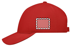 5 panel baseball cap in heavy brushed twill cotton 260 gm/m2 with silver steel buckle. 4 embroidered eyelets in matching colour. Size 7 1/4.