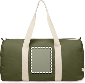 Dufflebag eller resväska med dragkedjeförsett sidofack och dragkedjeförsedd innerficka i 320 gr/m² återvunnen bomull (80%) och återvunnen polyester (20%) med långa handtag.