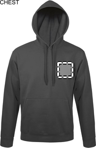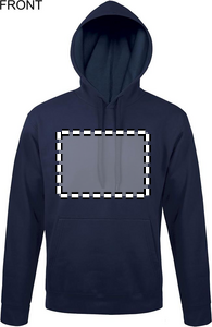 SOL'S SNAKE, hettegenser for unisex. Prisgunstig med moderne passform. Elastan i mansjetter og nederkant, kengurulomme, hette med snøring i samme farge. Uten etikett. Stoffdetaljer: 280G/M² 50% ringspunnet bomull - 50% polyester, børstet på innsiden. Oeko-Tex®. Selges kun med trykk