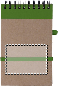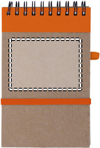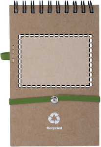 Notatblokk i lommeformat, med 70 blanke resirkulerte papirsider, samt en resirkulert kulepenn med nedbrytbare deler. FSC®-certified | FSC MIX, P7.1, FSC-C213206