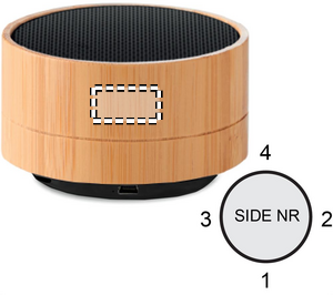 Trådløs høyttaler i ABS med bambusdeksel og LED-indikator. Høyttaleren har et oppladbart Li-ion-batteri på 450 mAh. Inkluderer en SD-port og en AUX / USB-kabel. Håndfri ringefunksjon.