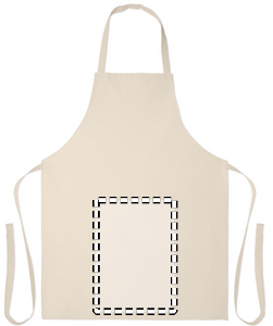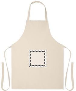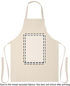 Förkläde i återvunnen bomull från återvunnen textil i 180 gr/m² (70% återvunnen bomull och 30% RPET-polyester). Produkten kan krympa något efter märkning.