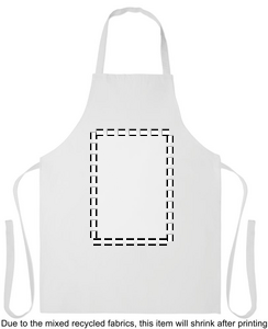 Förkläde i återvunnen bomull från återvunnen textil i 180 gr/m² (70% återvunnen bomull och 30% RPET-polyester). Produkten kan krympa något efter märkning.