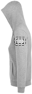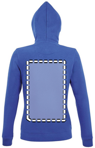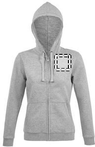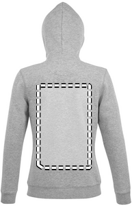 SOL'S SPIKE WOMEN. Hettegenser med glidelås for menn, 80% ringspunnet bomull - 20% polyester Børstet fôr, Utsiden: 100% bomull FLEECE 280 LSF (Low Shrinkage Fabric), Innsatte ermer, 2 lommer foran, Kuttet og sydd, Fôret hette med tone-i-tone snøring, 2x2 ribbede mansjetter og nederkant. Halvmåneformet innvendig krage, Teipet hals, YKK-glidelås. OEKO-TEX®. Selges kun med trykk.