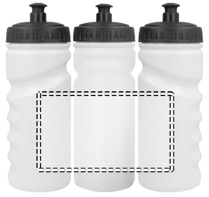 Sporty vannflaske med komfortabelt håndtak formet for hånd. Materiale i solid PE-plast. Kapasitet: 500 ml. Lekkasjefri.