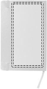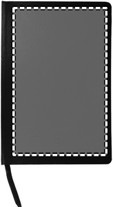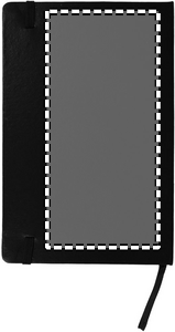 A5 notatbok med 96 notatsider. Et elastisk bånd holder boken lukket.