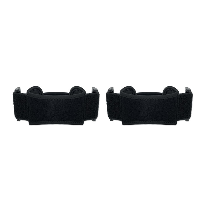 Set med 2 sportknäskydd tillverkade av tyg laminerat med kloroprengummi och baksida av frotté. Mjuka, flexibla och stödjande för aktiv användning.