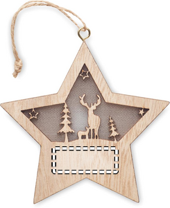 MDF decorated star with light inside with Christmas ornaments and hanging cord. Including 3 LR44 batteries.