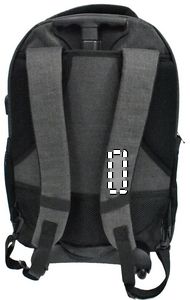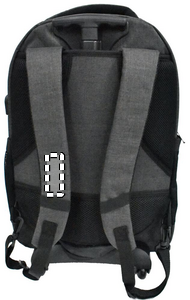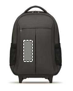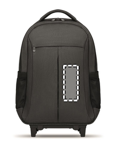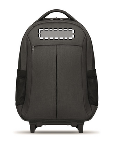 Ryggsekk med hjul og håndtak. Et hovedrom, en lomme på innsiden til 15 tommer laptop og en lomme foran med glidelås. Polstret rygg og skulderrem. Integrert beskyttelse for hjulene når sekken bæres.
