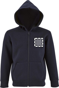 SOL'S STONE KIDS, KIDS' ZIP HOODIE, 50% ringspunnet bomull - 50% polyester BRUSHED FLEECE 260, innsydde ermer, 2 kengurulommer, hette, ribbestrikkede mansjetter og bunn, rørformet. For størrelsesmatching, se størrelsestabellen i produktdokumentasjonen.