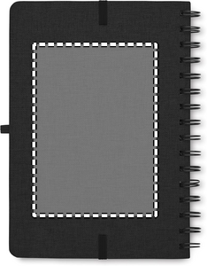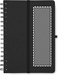 A5 anteckningsbok med hårt omslag i 600D RPET med ställ smartphone. Ringbunden med 160 linjerade sidor (80 ark). 70gr återvunnet papper. Elastisk låsband.