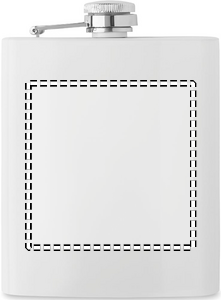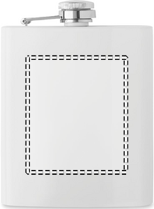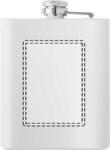 Slim hip flask in recycled stainless steel (90% recycled stainless and 10% stainless steel) with sublimation layer. Single wall. Capacity: 180 ml.